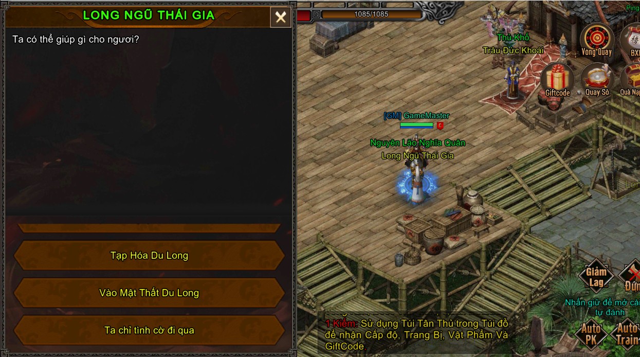 - Nhấp vào NPC Long Ngũ Thái Gia và chọn "Vào mật thất Du Long" để vào mật thất
